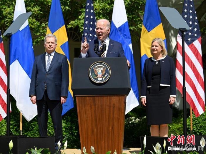 图为2022年5月,拜登在白宫会晤到访的芬兰和瑞典领导人。 中新社记者 陈孟统 摄