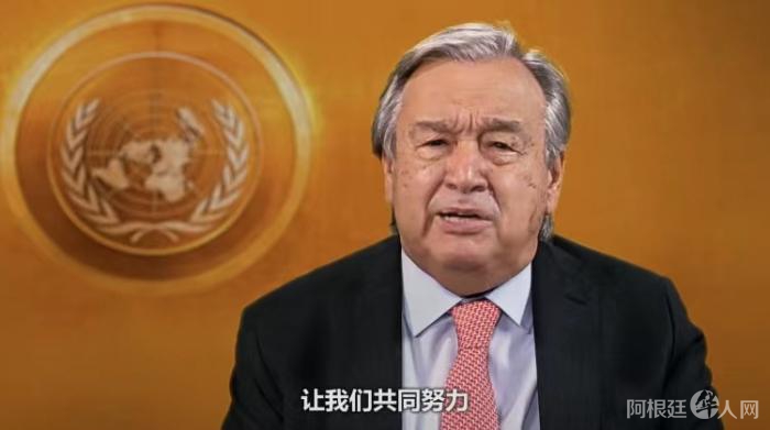 图为联合国秘书长古特雷斯发表新年致辞。图片来源:联合国微信公众号视频截图