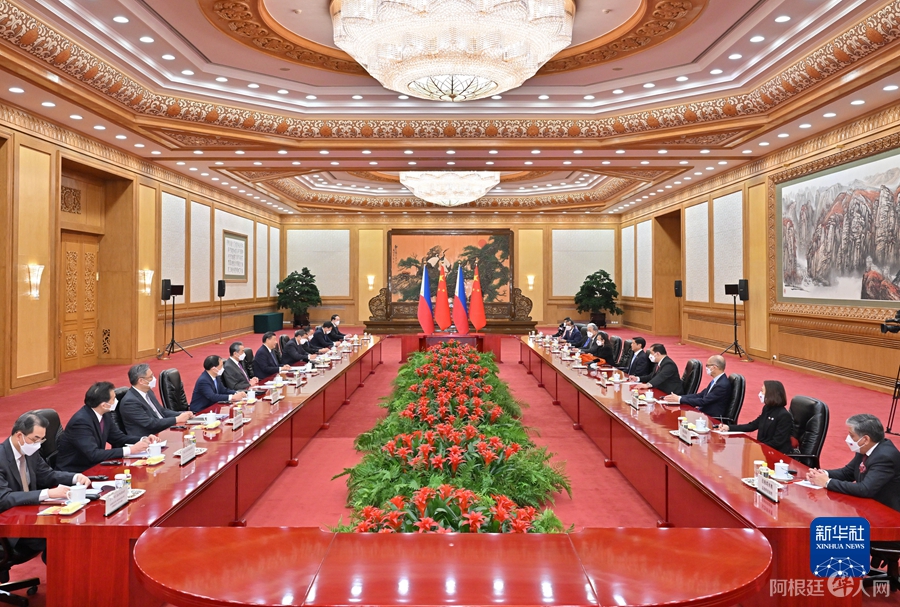 1月4日,国家主席习近平在北京人民大会堂同来华进行国事访问的菲律宾总统马科斯举行会谈。新华社记者 岳月伟 摄