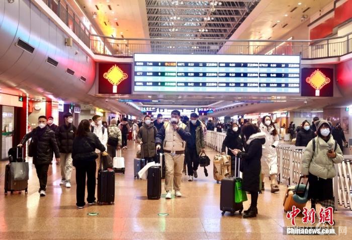 1月16日,旅客在北京西站候车厅准备乘车出行。 中新社记者 易海菲 摄