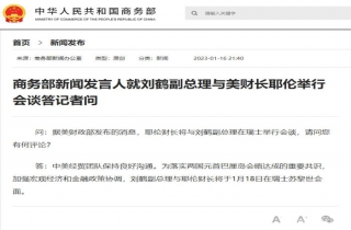 中新网1月16日电 据商务部网站16日消息,商务部新闻发言人就刘鹤副总理与美财长耶伦举行会谈答记者问。