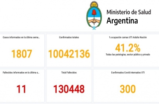 (阿根廷华人网2月13日讯 黄东)据阿根廷卫生部本周一通报,最近一周内全国新增新冠病例1807例,较前一周的3194例下降了43%;新增死亡病例11例,较前一周下降了31%...