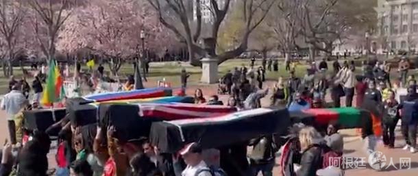 美反战人士白宫外“抬棺抗议”:对美国无休止战争说不!
