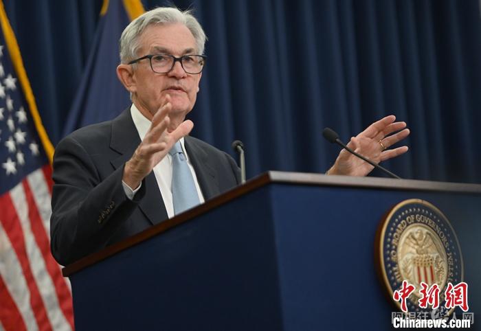当地时间3月22日,美国联邦储备委员会宣布,将联邦基金利率目标区间上调25个基点到4.75%至5%之间。在连续第九次加息后,美联储当天暗示本轮加息接近尾声。图为美联储主席鲍威尔出席当天记者会。 中新社记者 陈孟统 摄