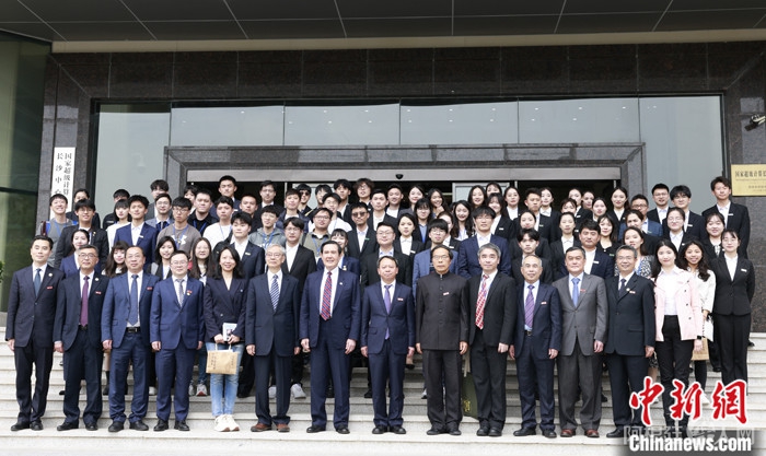 4月2日,返乡祭祖的马英九率28位台湾学子到湖南大学交流座谈。 中新社记者 路梅 摄