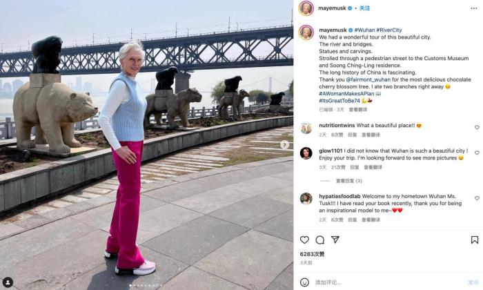 梅耶·马斯克在武汉游览。(图片来源:梅耶社交媒体截图)