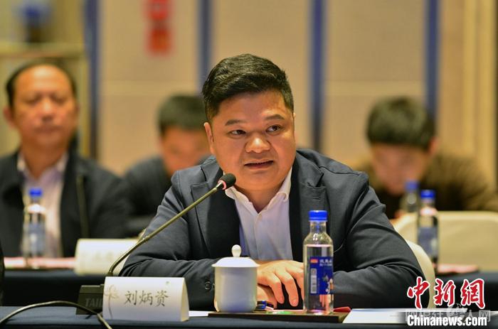 图为4月6日,福建福州,旅意福建华侨华人同乡总会会长、意大利中资五金配件公司董事长刘炳资在海外侨商联谊发展座谈交流活动上发言。 中新社记者 张斌 摄