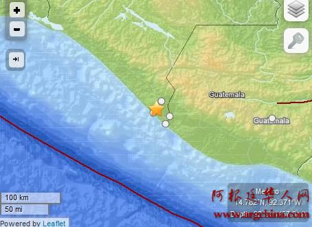 当地时间7日早上,墨西哥与危地马拉交界的太平洋沿岸发生里氏6.9级地震。图片来源:美国地质勘探局网站。