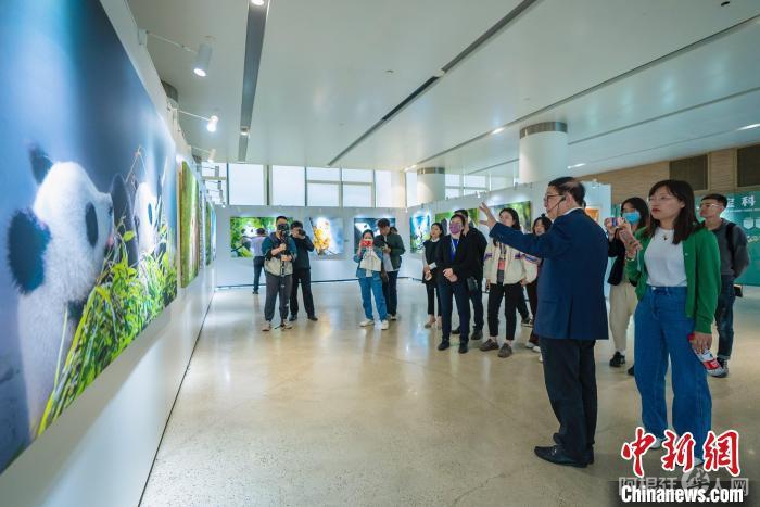 21日下午,由中国新闻社联合川渝两地统战部门和宣传部门组织的“行走中国·2023海外华文媒体高层川渝行”参访团走进位于四川成都的凤凰山成都大学中国双宝文化艺术展馆、中国双宝国际文化交流中心。来自美国、加拿大、比利时等21个国家的28家主流华文媒体高层了解大熊猫和金丝猴两个文化IP,聚焦人与自然和谐共生之路,见证“中国双宝”故事的创新表达。