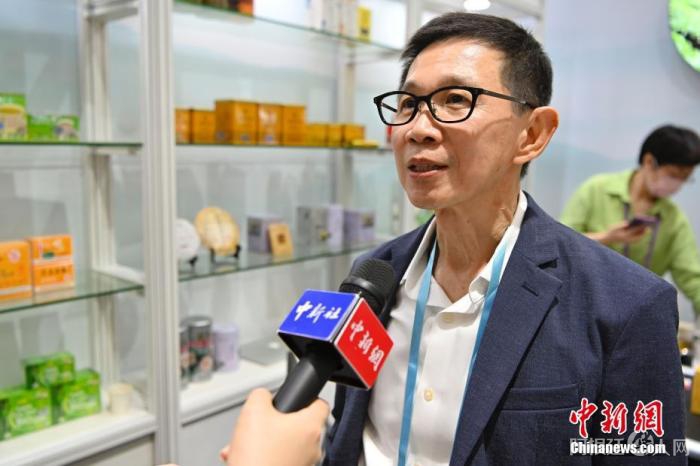 图为5月2日,广东省广州市,印尼百年老店“章长盛”的第四代传人章镇强在广交会上接受中新社记者采访。 中新社记者 陈骥旻 摄