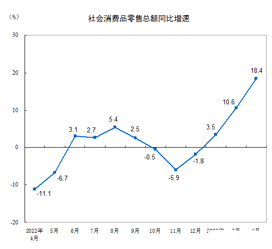 4月份消费大涨18.4%