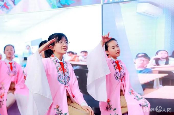 在饶老师的带动下,西班牙同学们还通过视频跟成外附小的同学们学起了川话,演唱了川剧中的部分片段。
