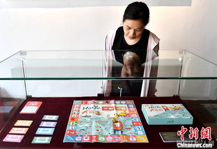 图为台湾文创产品《Muse17同乐游—大富翁桌游盒》吸引参观者。 中新社记者 吕明 摄