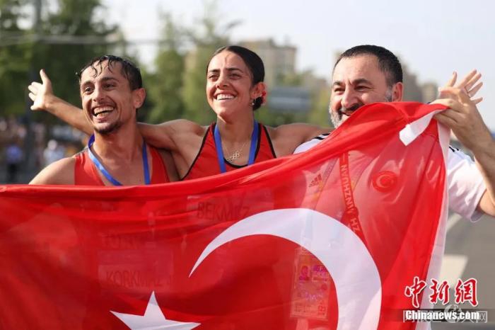 8月5日,土耳其亲兄妹包揽男女20公里个人竞走冠军。蒋启明 摄