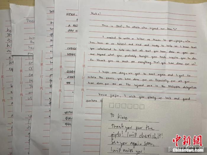 菲律宾代表团运动员留给志愿者的手写信。艾叶(受访者)供图