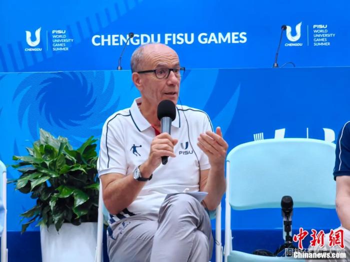 8月8日,国际大体联代理主席雷诺·艾德评价总结成都大运会。韩金雨 摄
