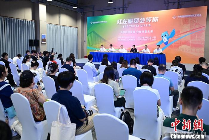 8月13日,“我在服贸会等你”2023年服贸会新闻发布会在北京举行。图为发布会现场。 中新社记者 田雨昊 摄