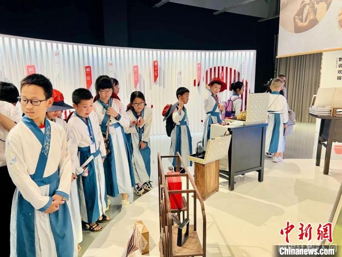 海外华裔青少年们身着传统服饰,参观浙江东阳木雕博物馆。张耀 供图
