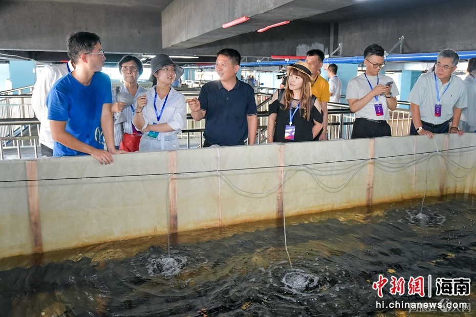 8月20日,2023年“行走中国·海外华文媒体海南行”活动走进海南文昌冯家湾现代化渔业产业园,来自14个国家的20位海外华文媒体人士实地了解海南渔业转型发展变迁。