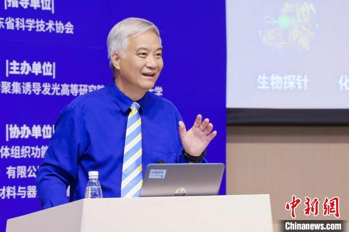 中国科学院院士、世界发展中国家科学院院士、发光材料与器件国家重点实验室学术委员会主任唐本忠致辞。 聚集诱导发光高等研究院 供图
