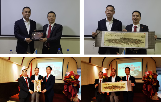 代表团一行和旅阿侨界代表互赠纪念品后合影留念