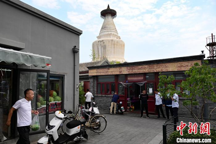 “2020年,我们秉持古朴、精致生活的理念,对两条街巷共约600米的区域进行了架空线入地、外立面修缮和地下管网的调整等,用13个月完成了改造。”西城区新街口街道办事处副主任张立介绍,55根线杆的拔除让白塔一览无余呈现在民众面前。凭借街区独特的文化优势,街道引进了餐饮、咖啡、花店、书吧等多种业态,丰富了街道景观和生活服务。