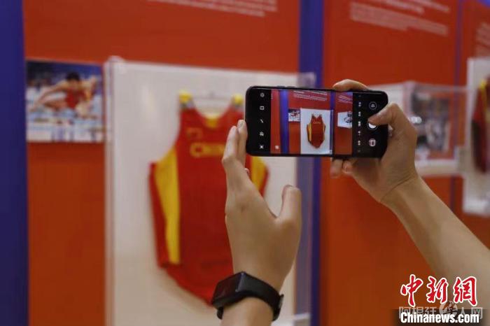 游客“打卡”刘翔的比赛服。 肖健 摄