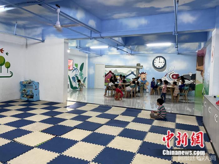 为了照顾女工们的家庭生活,产业中心里特地设有一间托育室,不少幼龄儿童在里面由专人照管。他们的母亲就在工厂工作,下班后再接他们回家。