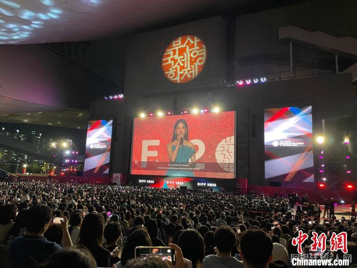 4日晚间,第28届釜山国际电影节(BIFF)在韩国釜山开幕。图为电影节开幕式。(许鹏飞 摄)