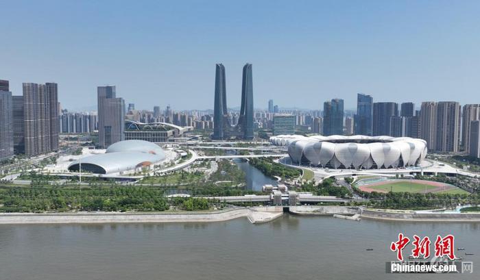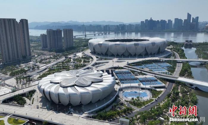 资料图:航拍杭州奥体中心的“大莲花”和“小莲花”。 中新社记者 王刚 摄