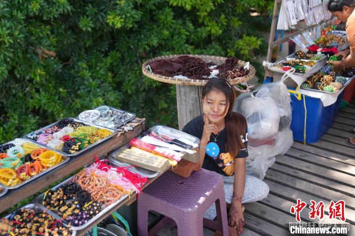 10月1日,缅甸曼德勒,街头一位商贩在售卖翡翠玉石饰品等商品。 中新社记者 刘冉阳 摄