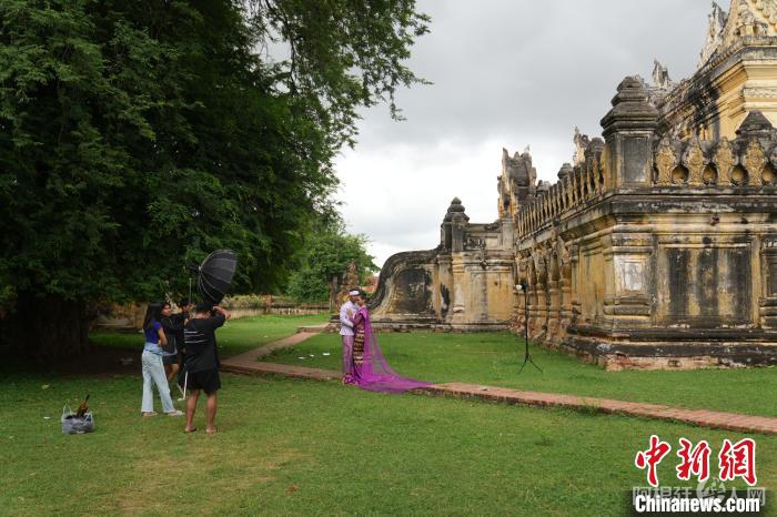 9月30日,缅甸曼德勒,一对新人在因瓦古城遗址拍摄婚纱照。 中新社记者 刘冉阳 摄