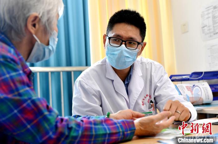 10月9日,现就职于福州市皮肤病防治院的台籍医生陈柏叡在与一名患者交流。 中新社记者 吕明 摄