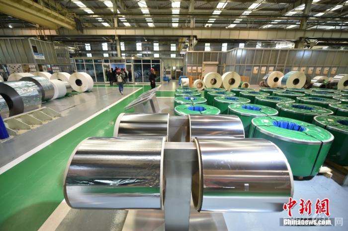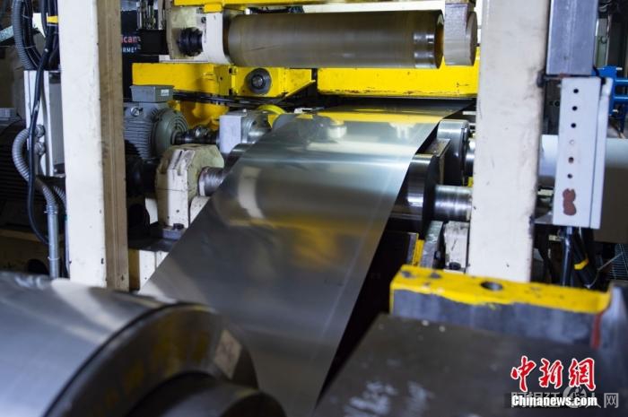 图为生产线产出的带钢。中新网记者 李骏 摄