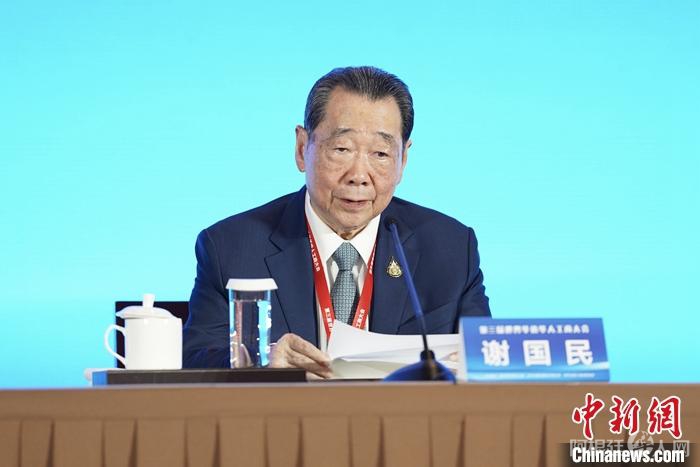 图为中国侨商联合会会长、泰国正大集团资深董事长谢国民发言。 中新社记者 崔楠 摄
