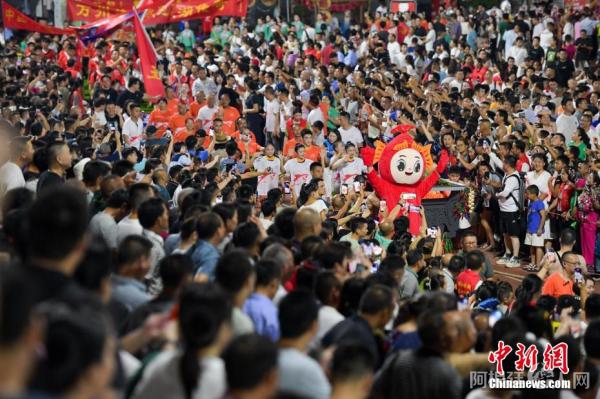 图为万州烤鱼队亮相“村超”现场。何蓬磊 摄