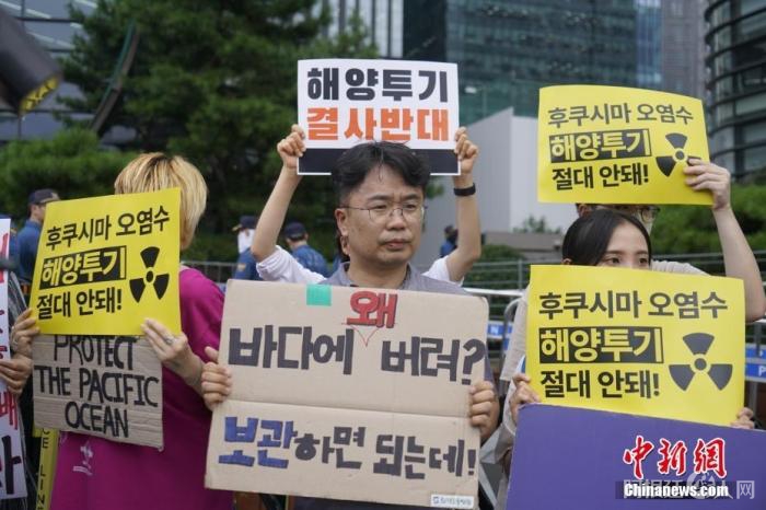资料图:韩国多个民间团体集会抗议日本核污染水排海决定。中新社记者 刘旭 摄
