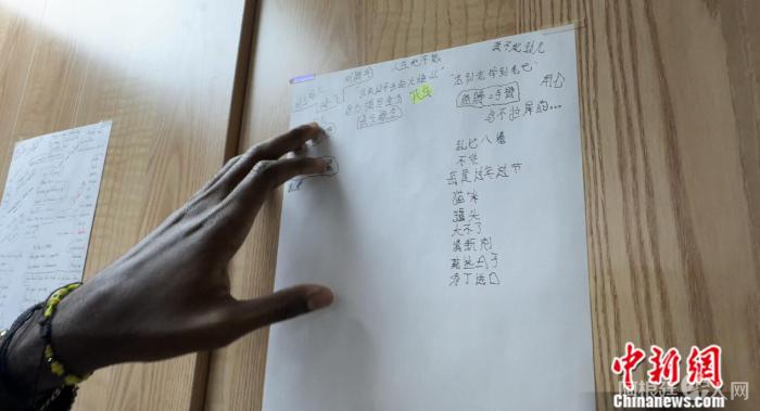 所以,和周围的同学一样,来到中国之后,任瑞依旧没有停下学习的脚步。“不太理解或者自己觉得比较难背下来的词汇,我都记下来贴在柜子上。”任瑞展示了他宿舍里的“随手贴”,上面记满了“没有过不去的火焰山”等等有趣的中文俗语和词汇。