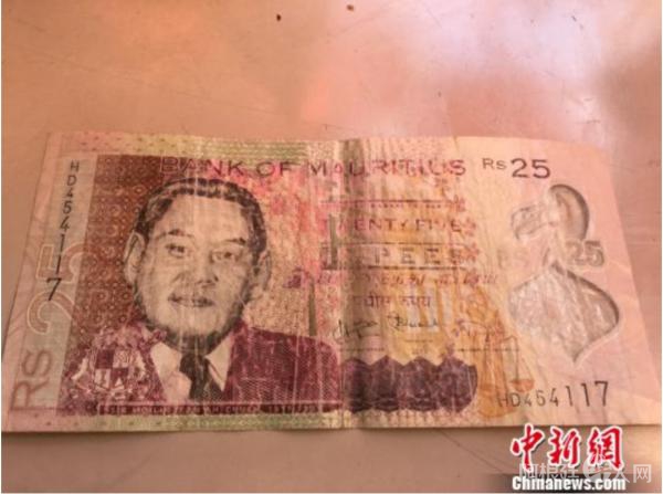 印度洋岛国毛里求斯有一张25卢比纸币,上面印有一张华人面孔朱梅麟。 邢翀 摄