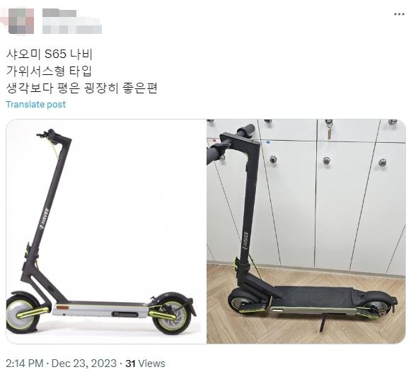 韩国网友在购买中国产智能滑板车后,点评性能“超乎想象”。图片来源:社交媒体截图