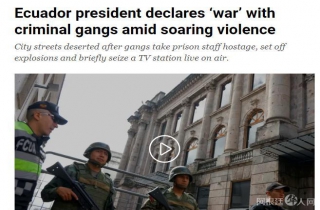 中新网1月11日电 综合外媒报道,厄瓜多尔总统诺沃亚当地时间10日宣布,该国正处于“战争状态”。