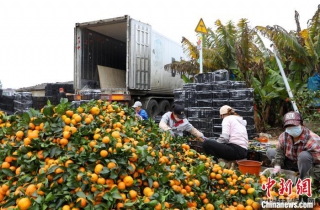 1月5日,在广西南宁市西乡塘区坛洛镇同富村,村民分拣刚采摘的砂糖橘。眼下正是砂糖橘成熟的季节,当地农民忙着采摘上市。(资料图) 中新社记者 王伟臣 摄