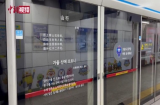 记者在首尔地铁明洞站看到,在6-1号屏蔽门两旁的透明玻璃墙上用白字印着唐代诗人杜牧的诗《山行》全文,下方还印着带有韩国诗歌风格的韩文翻译,并标注了杜牧的生卒年和国家(中国)及译者。除了中文诗词之外,明洞站还贴有美国诗人沃尔特·惠特曼的《自我之歌》节选、日本徘人松永贞德的俳句和首尔市民的韩文诗作等。(刘旭 金琳 制作 刘世炯)