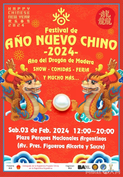 (阿根廷华人网1月22日讯)一年一度的阿根廷2024“欢乐春节”庆典活动的各项准备工作正在紧锣密鼓地进行,中阿两国人民欢聚共庆新年的盛会即将到来,诚挚邀请广大旅阿侨胞光临活动现场,共度春节,2月3日与您相约在Plaza Parques Nacionales Argentinos。