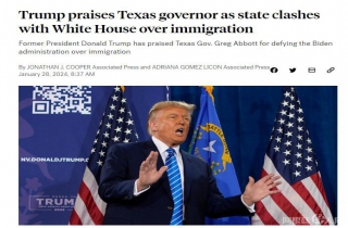 中新网1月28日电 据美国广播公司(ABC)报道,近日,美国联邦政府与得克萨斯州在边境移民问题上的争执不断升级,美国前总统特朗普当地时间27日对得州州长阿博特大加赞赏,称赞其不允许拜登政府拆除边境铁丝网的做法。