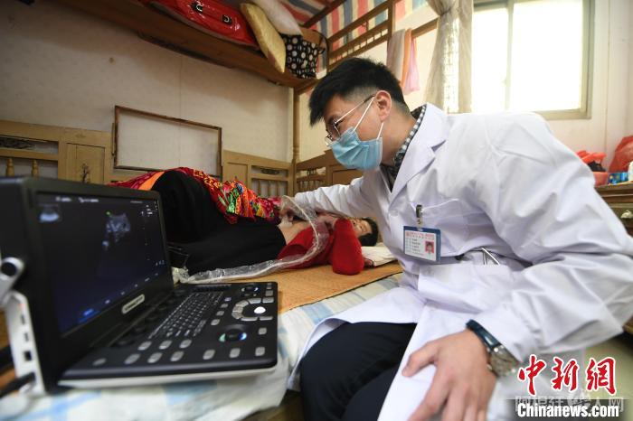 医生使用便携式彩超机检查老人家术后的恢复情况。洪坤泽摄