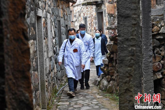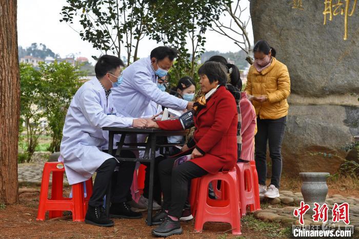 区、镇、村三级医生开展定期入户巡诊活动,为村民们检查身体、诊断病情、讲解基本医学常识。洪坤泽摄