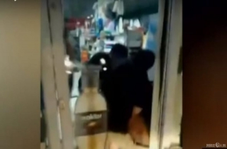 其中一名员工发现情况后,想要阻止对方离开,不料遭到激烈反抗。在此情况下,歹徒遭到殴打,这一幕被门外的一名目击者拍到。