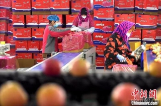 随着甲辰龙年的到来,山东省淄博市沂源县特产“沂源红”苹果迎来新年“出口季”。在“沂源红”苹果的主产地中庄镇,工人们正加急搬运准备出口的苹果。“我们现在装运的苹果是发往菲律宾、孟加拉国、印度尼西亚等东南亚国家。”沂源县盛全果蔬有限公司会计刘丽存说。