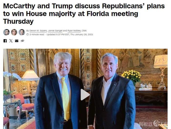 美国前众议长麦卡锡也被视为特朗普的“亲密盟友”。